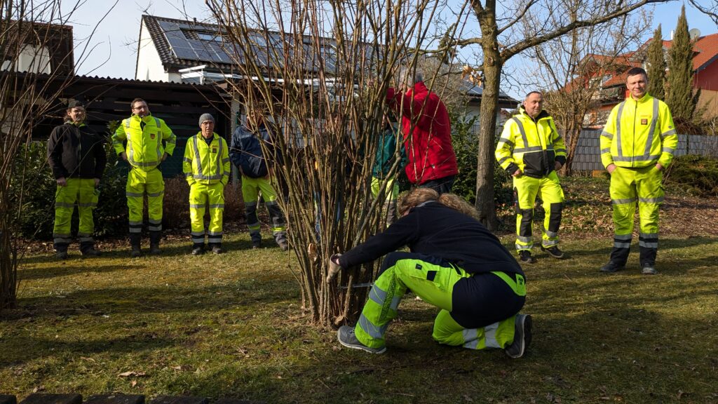 Ein positiver Nebeneffekt ist der Austausch untereinander: Bei den Praxisteilen und in den Pausen bei einem Imbiss können sich die Kolleginnen und Kollegen der unterschiedlichen Bauhöfe über ihre tägliche Arbeit austauschen und gegenseitig Tipps geben. Denn jeder Bauhof ist anders aufgestellt. In manchen gibt es Gärtnertrupps, in vielen ist hingegen jeder für alles zuständig.