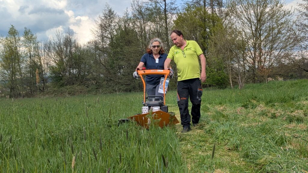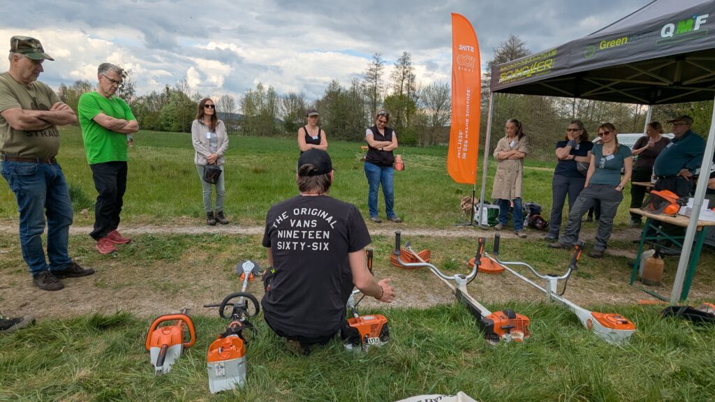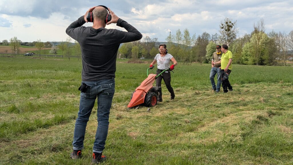 Nachmittags ging es nach Rimbach, wo die Firma Schmoller die 23 Teilnehmerinnen und Teilnehmer nach dem wichtigen Thema Arbeitsschutz in die Nutzung von Maschinen und Geräten zur Landschaftspflege eingewiesen hat. Vielen Dank nochmal für die professionelle und tolle Unterstützung an Wolfgang und Felix.